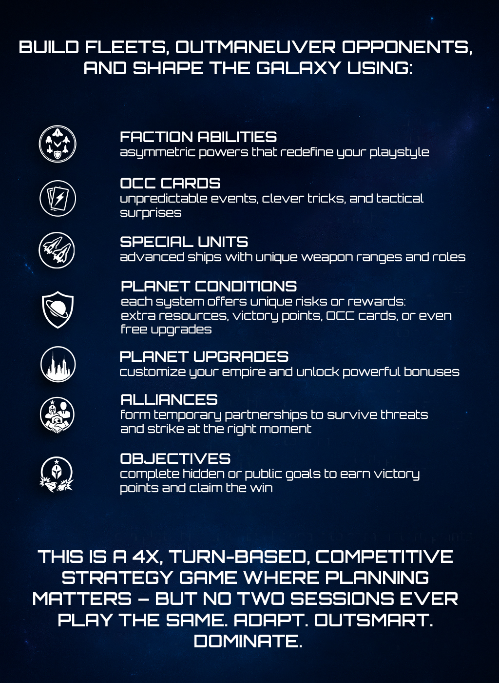 #4X #StrategyGame #TurnBasedStrategy #SciFiBoardGame #FleetBuilder #AsymmetricFactions #CompetitiveStrategy